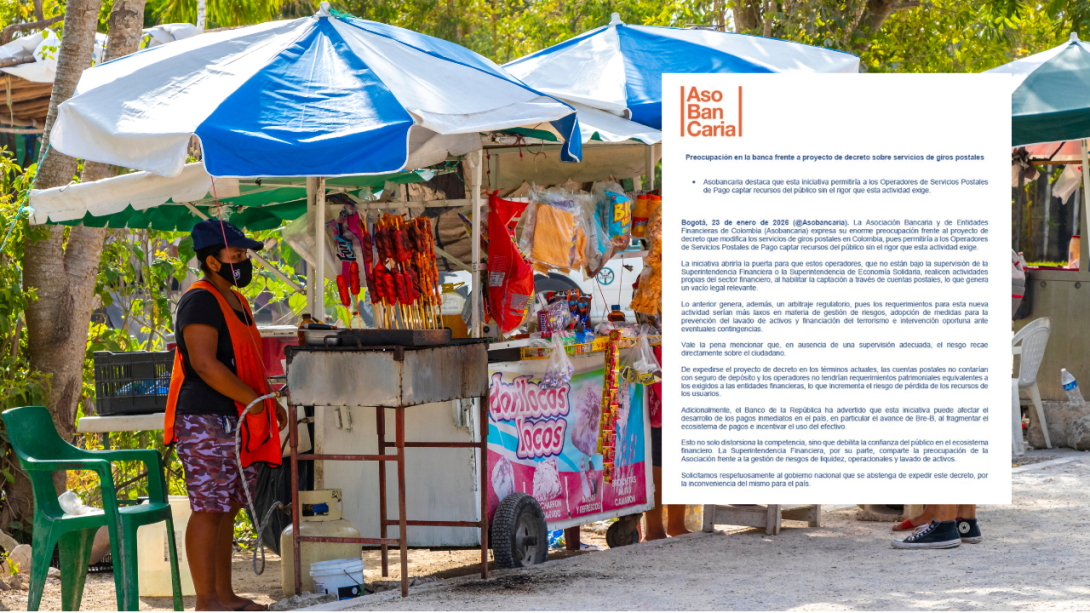 De acuerdo con la Asociación, la propuesta permitiría que los Operadores de Servicios Postales de Pago capten recursos mediante cuentas postales sin estar sujetos a la supervisión de la Superintendencia Financiera ni a los estándares prudenciales que rigen a las entidades financieras, lo que generaría un vacío regulatorio relevante.