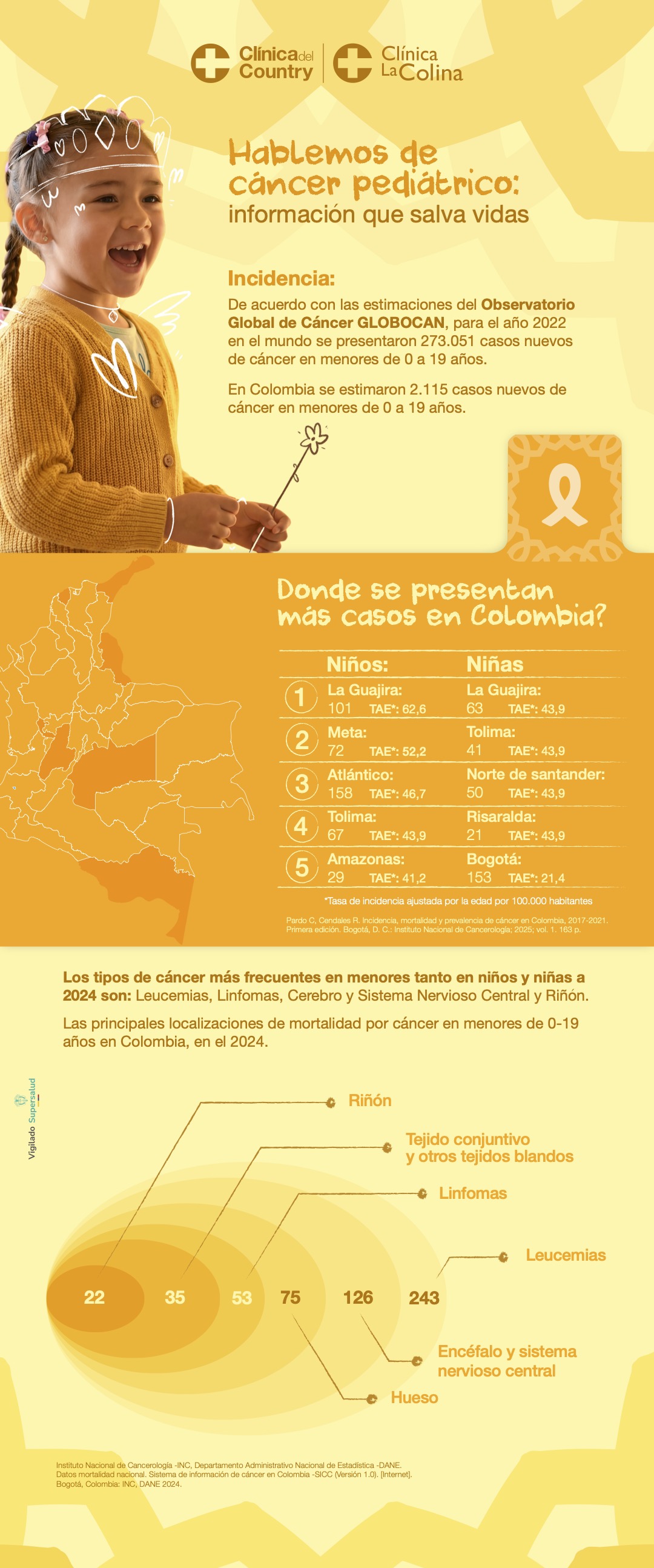 A nivel mundial, el Observatorio Global de Cáncer (GLOBOCAN 2022) reportó 273.051 casos nuevos y 104.890 fallecimientos en menores de 0 a 19 años.
